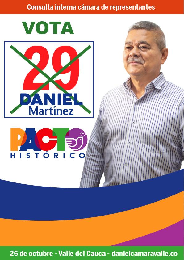 Daniel Martínez Upegui invita a los vallecaucanos a participar este domingo 26 de octubre de 2025 en la consulta del Pacto Histórico, solicitando el tarjetón de la Cámara de Representantes y marcando el número 29.